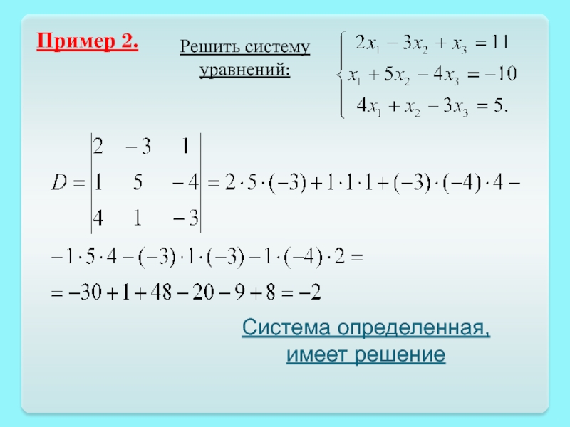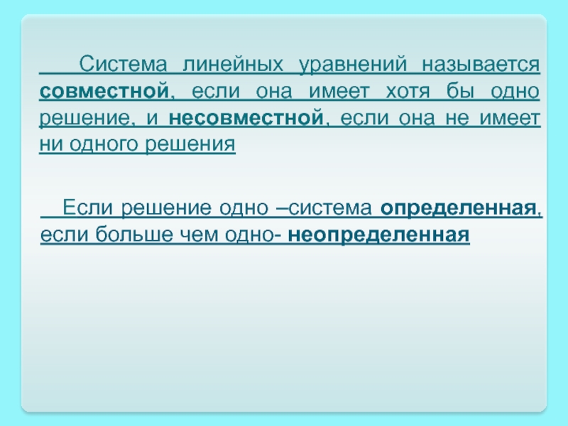 Если решение одно –система определенная, если больше чем одно- неопределенная