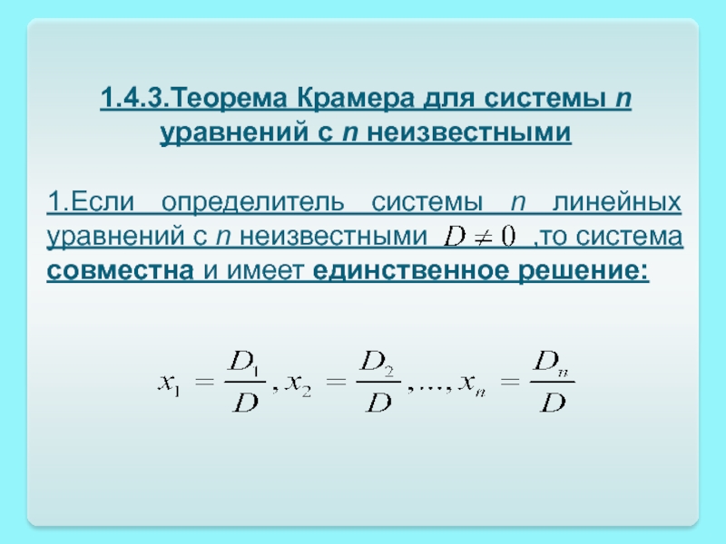 1.4.3.Теорема Крамера для системы n уравнений c n неизвестными