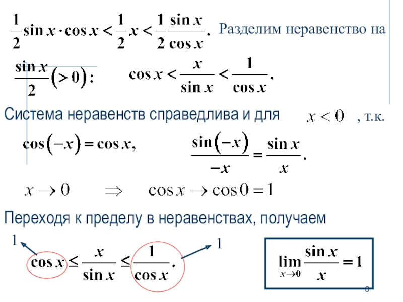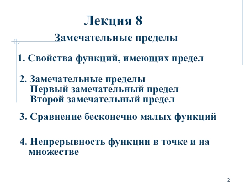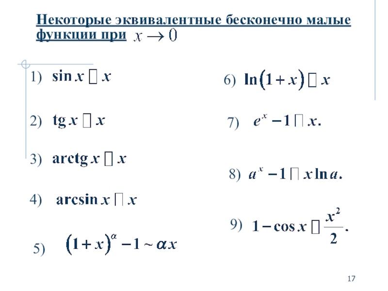 Второй замечательный предел 3. Сравнение бесконечно малых функций