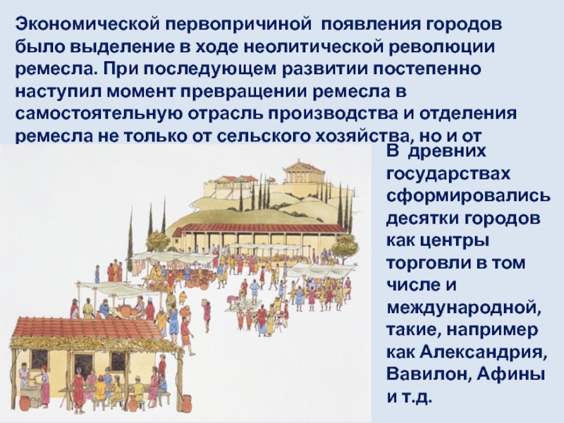 Слайд 7Экономической первопричиной появления городов было выделение в ходе неолитической революции