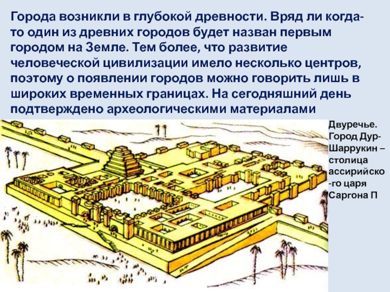 Слайд 4Города возникли в глубокой древности. Вряд ли когда-то один из