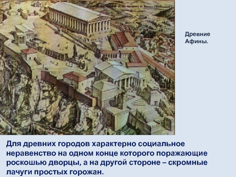 Слайд 16Для древних городов характерно социальное неравенство на одном конце которого