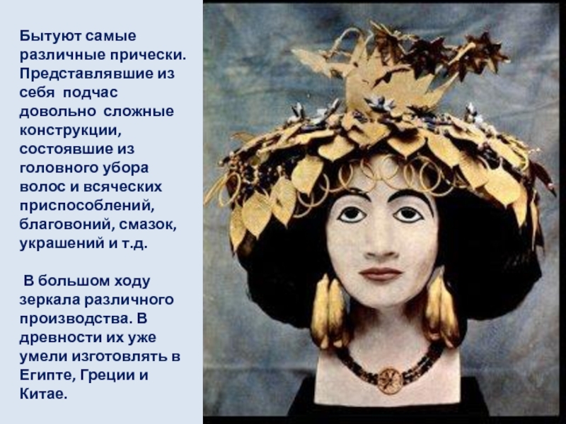 конструкции, состоявшие из головного убора волос и всяческих приспособлений, благовоний,