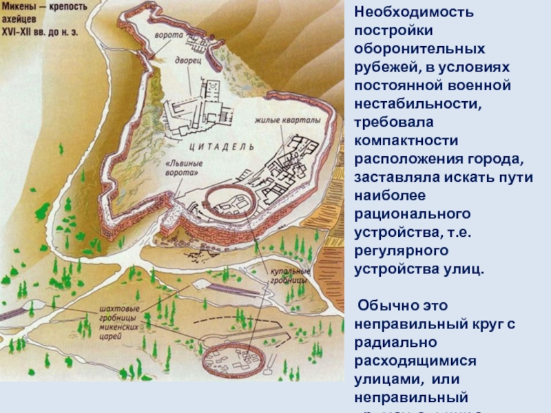Древние города, в которых были сосредоточены значительные материальные богатства имели систему мощных укреплений и несли на себе и оборонительные функции.
