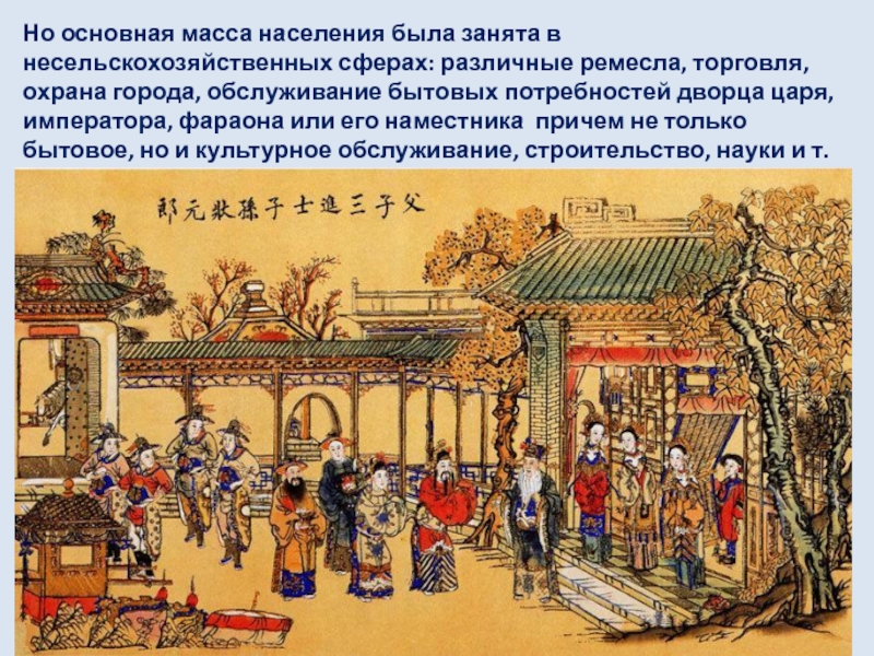 Слайд 18Но основная масса населения была занята в несельскохозяйственных сферах: различные