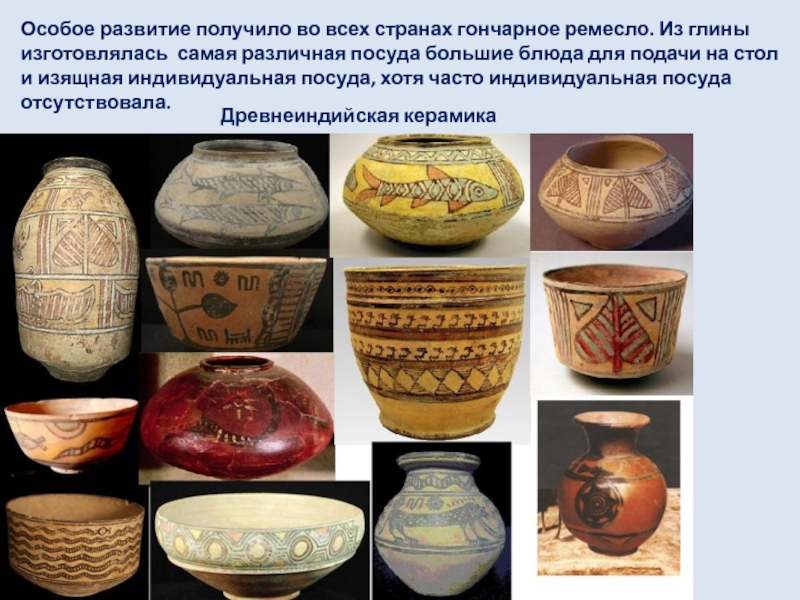 Слайд 68Особое развитие получило во всех странах гончарное ремесло. Из глины