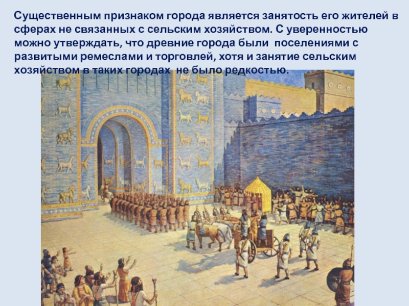 города были поселениями с развитыми ремеслами и торговлей, хотя и занятие сельским хозяйством в таких городах не было редкостью.