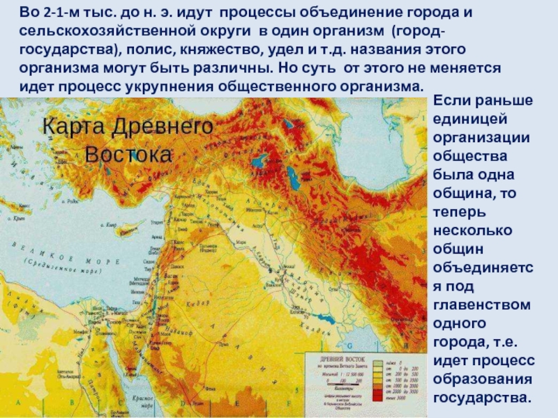 Если раньше единицей организации общества была одна община, то теперь несколько общин объединяется под главенством одного города, т.е. идет процесс образования государства.