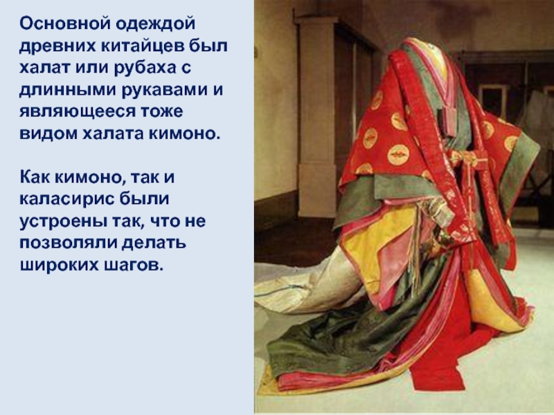 Слайд 90Основной одеждой древних китайцев был халат или рубаха с длинными
