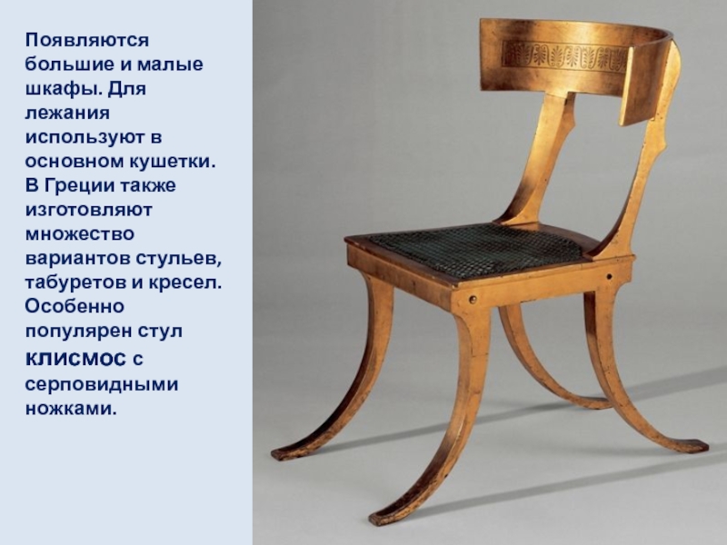 кресел. Особенно популярен стул клисмос с серповидными ножками.