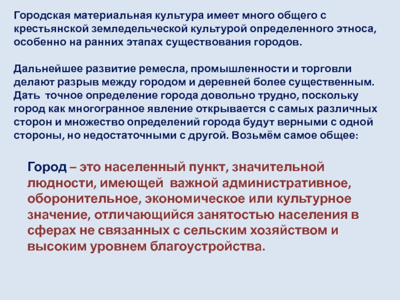 Слайд 3Городская материальная культура имеет много общего с крестьянской земледельческой культурой