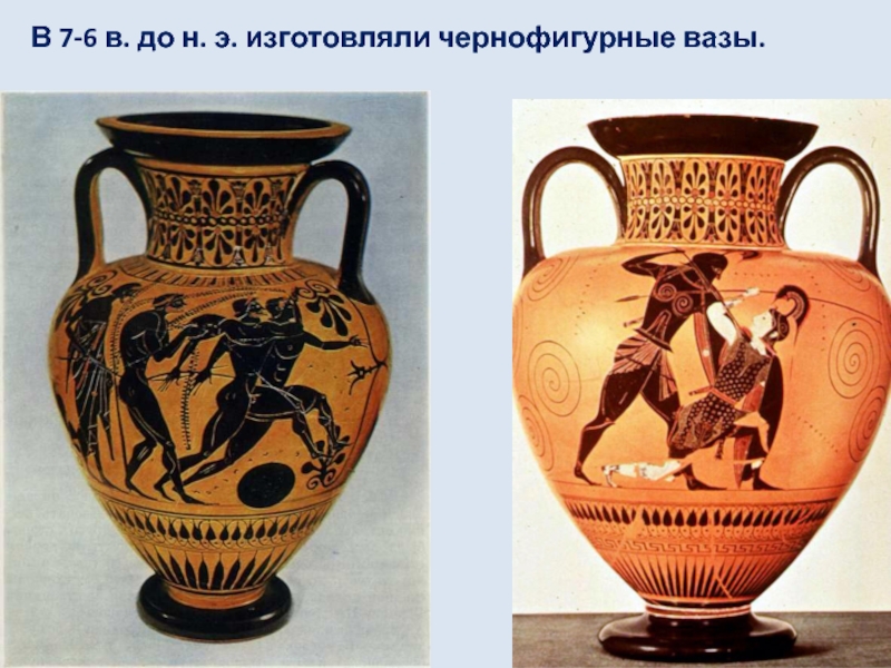 Слайд 71В 7-6 в. до н. э. изготовляли чернофигурные вазы.