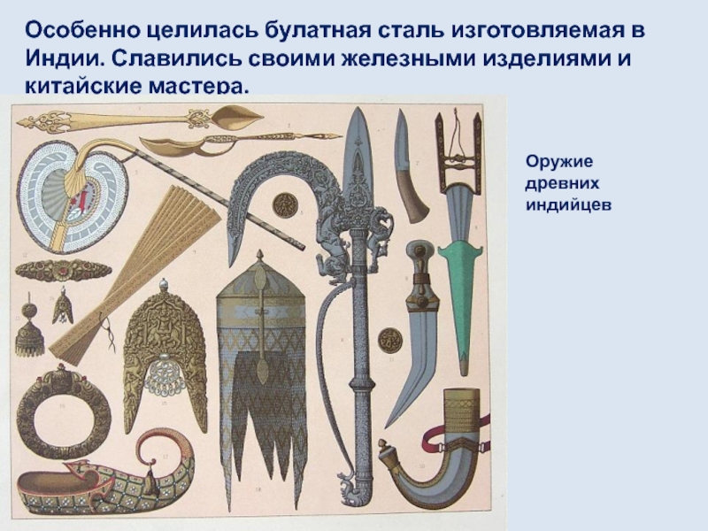Слайд 81Особенно целилась булатная сталь изготовляемая в Индии. Славились своими железными