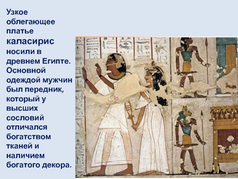 Слайд 88Узкое облегающее платье каласирис носили в древнем Египте. Основной одеждой