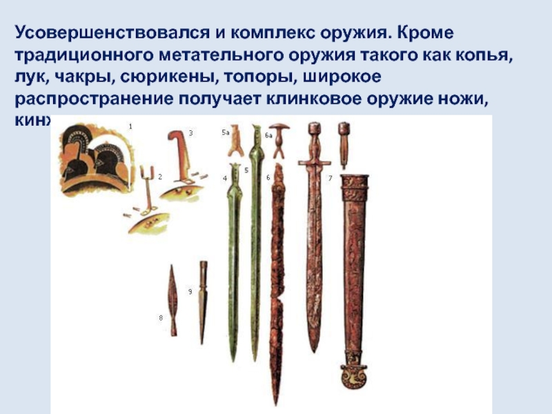 Слайд 79Усовершенствовался и комплекс оружия. Кроме традиционного метательного оружия такого как