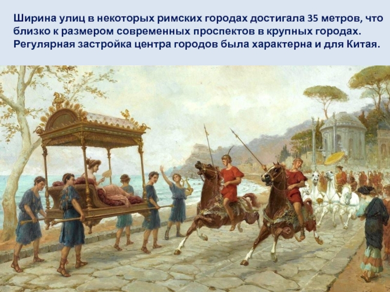 Слайд 24Ширина улиц в некоторых римских городах достигала 35 метров, что