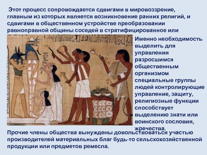 является возникновение ранних религий, и сдвигами в общественном устройстве преобразовании