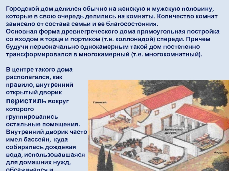 Слайд 26В древней Греции сам городской дом был устроен так, что