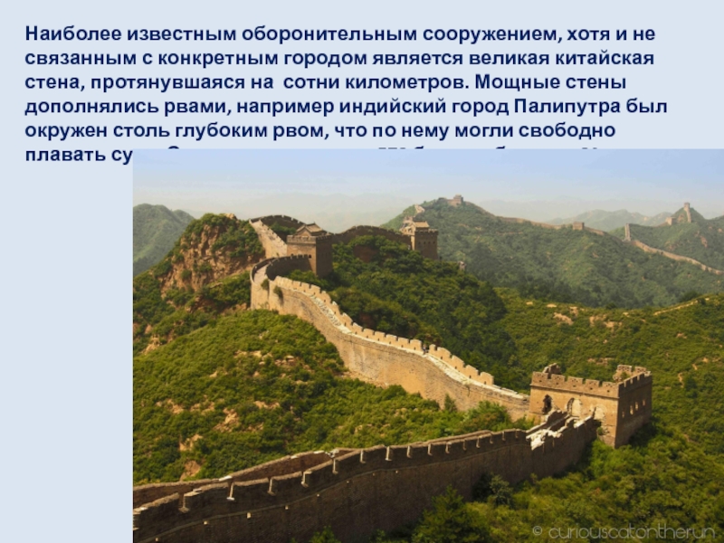 Слайд 10Наиболее известным оборонительным сооружением, хотя и не связанным с конкретным