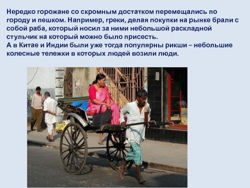 Слайд 65Нередко горожане со скромным достатком перемещались по городу и пешком.