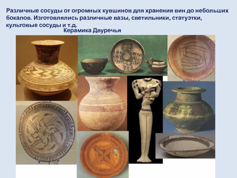 Слайд 69Различные сосуды от огромных кувшинов для хранения вин до небольших