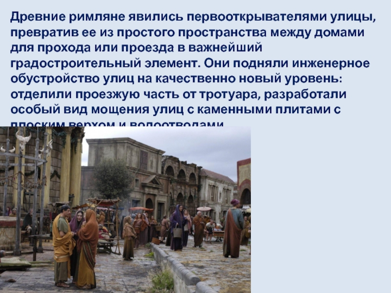 Слайд 23Древние римляне явились первооткрывателями улицы, превратив ее из простого пространства