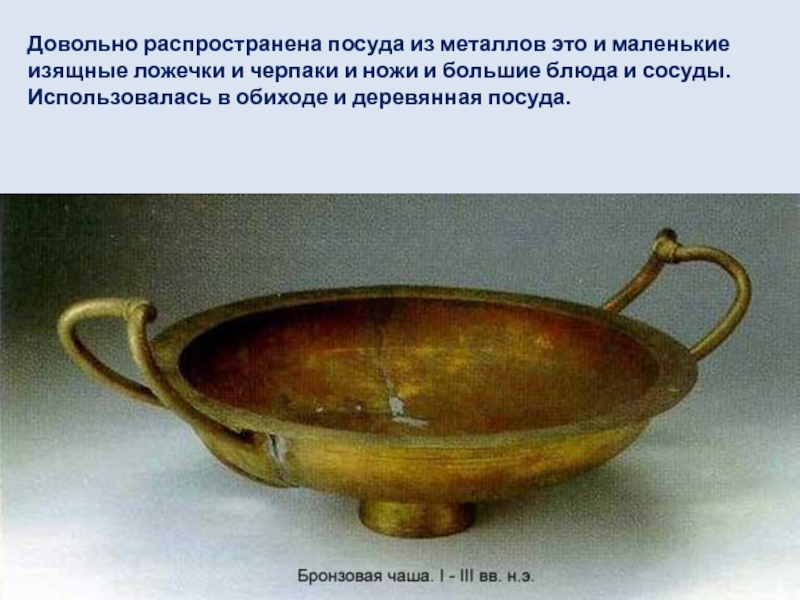и черпаки и ножи и большие блюда и сосуды. Использовалась