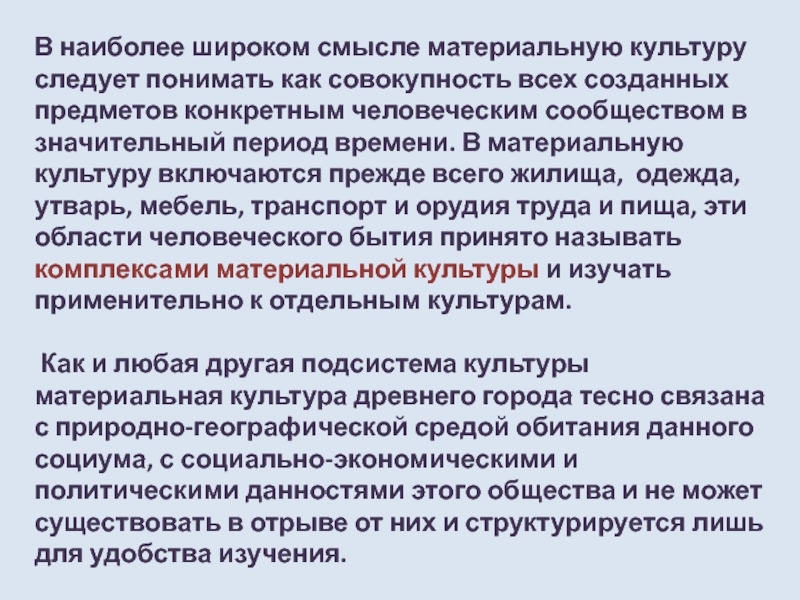 Слайд 2В наиболее широком смысле материальную культуру следует понимать как совокупность
