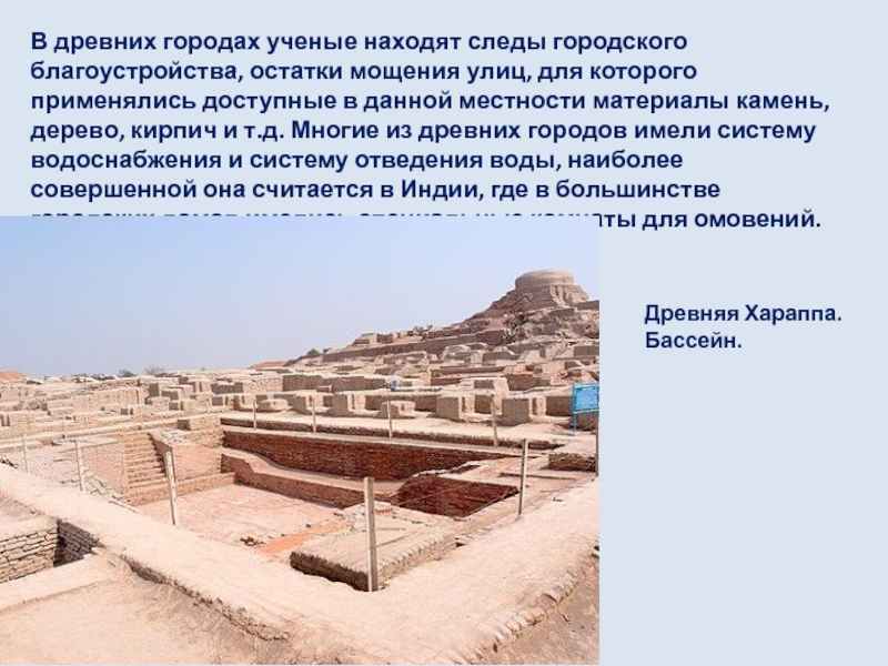 Слайд 25В древних городах ученые находят следы городского благоустройства, остатки мощения