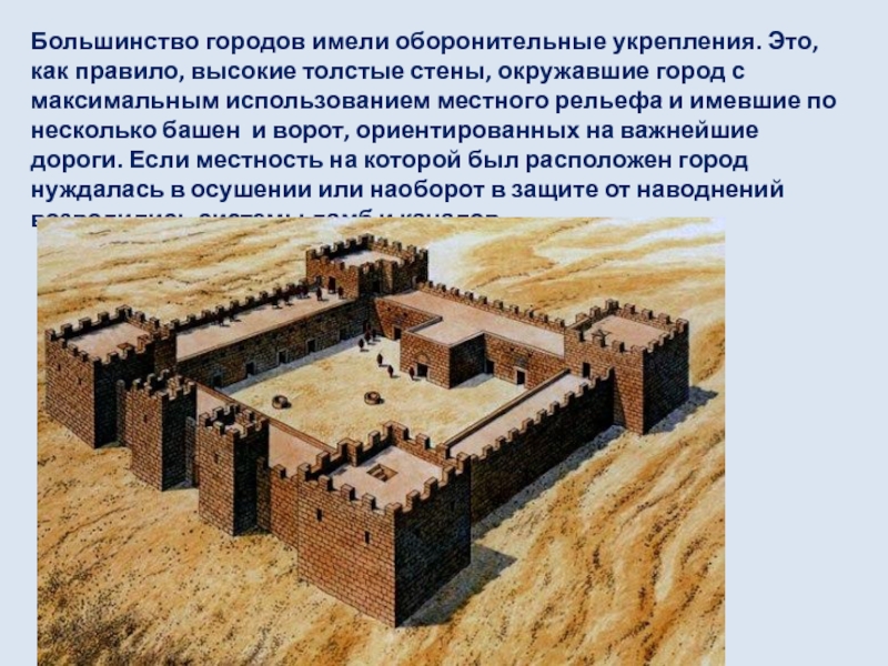 Слайд 9Большинство городов имели оборонительные укрепления. Это, как правило, высокие толстые