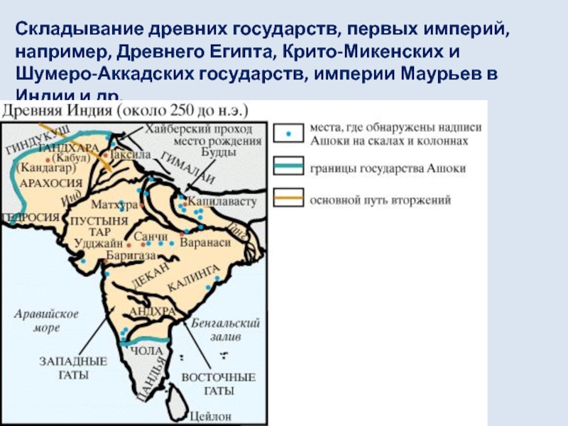 Шумеро-Аккадских государств, империи Маурьев в Индии и др.