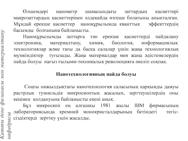 Слайд 1Материалтану саласындағы нанотехнологиялар