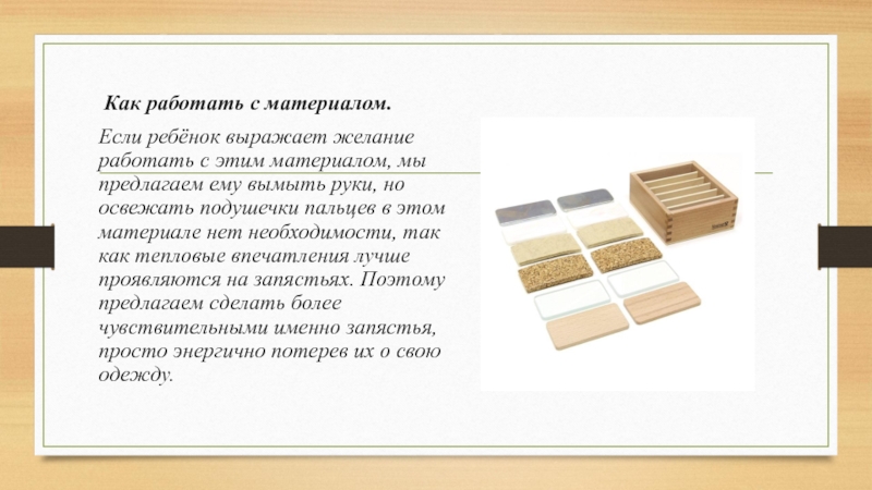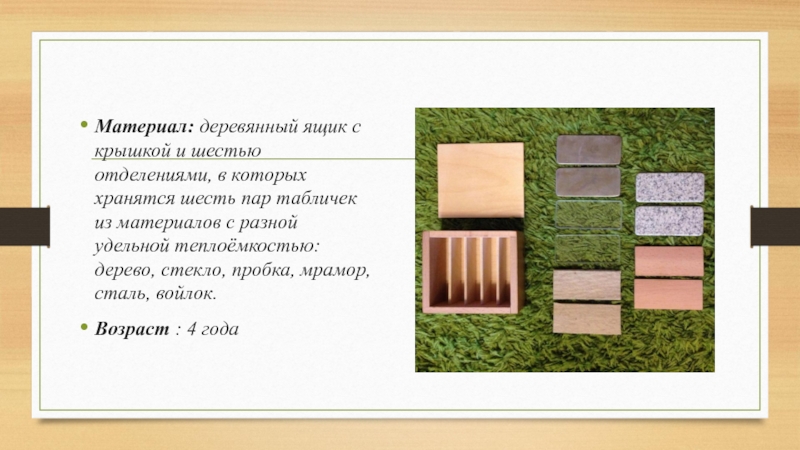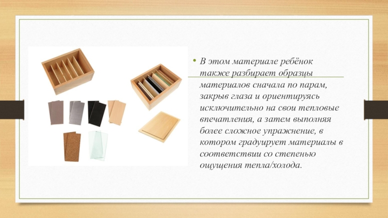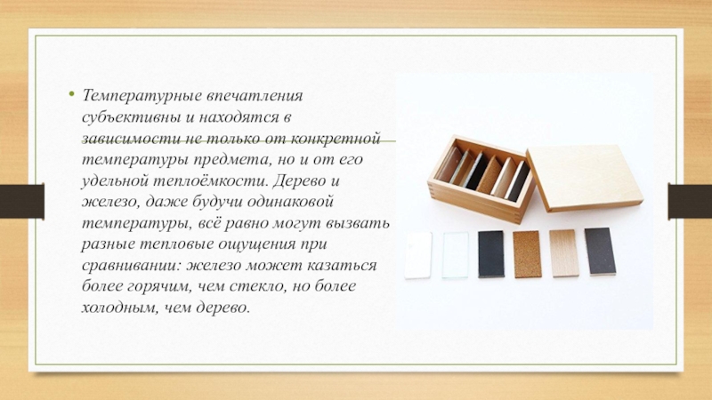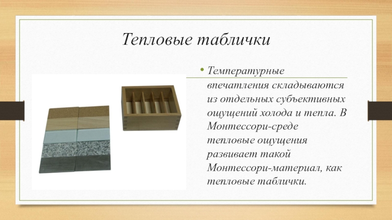 и тепла. В Монтессори-среде тепловые ощущения развивает такой Монтессори-материал, как