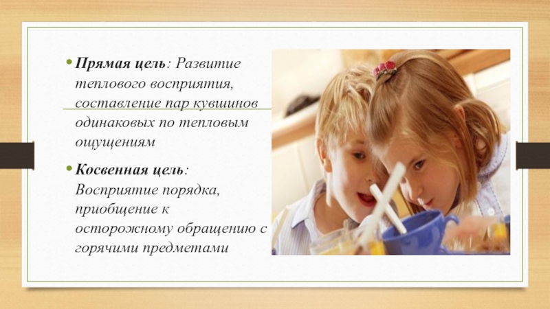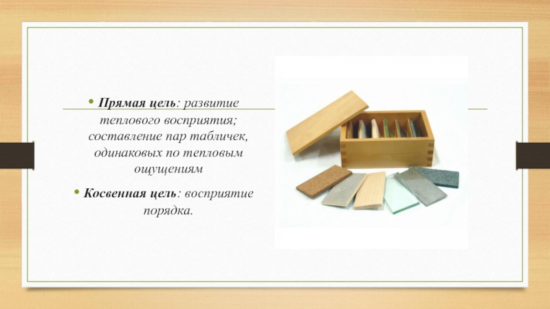 Прямая цель: развитие теплового восприятия; составление пар табличек, одинаковых