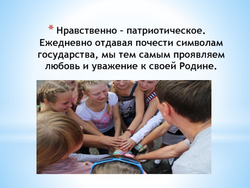 Слайд 25Нравственно – патриотическое.