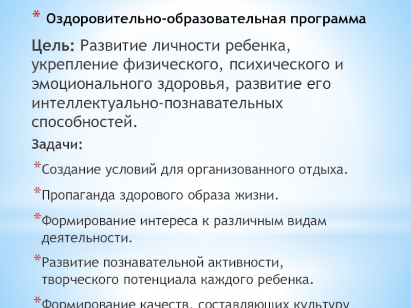 Слайд 21Оздоровительно-образовательная программа