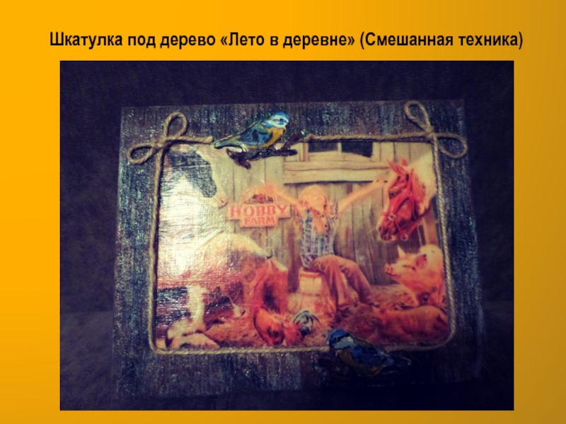 Слайд 24Шкатулка под дерево «Лето в деревне» (Смешанная техника)