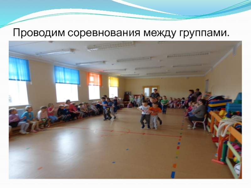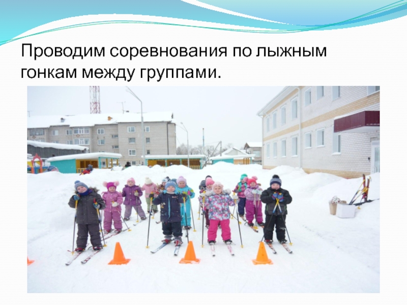 Слайд 13Проводим соревнования по лыжным гонкам между группами.
