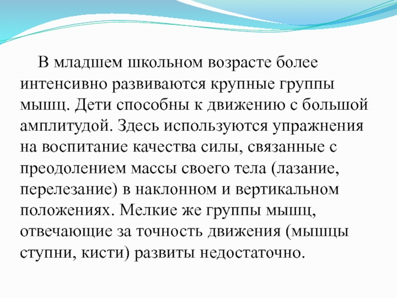 Слайд 29 В младшем школьном возрасте более интенсивно развиваются крупные