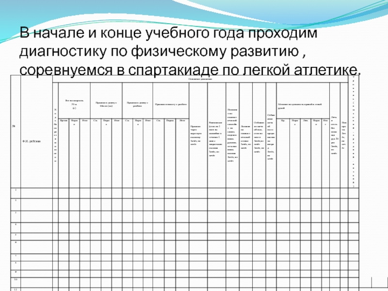 Слайд 19В начале и конце учебного года проходим диагностику по физическому