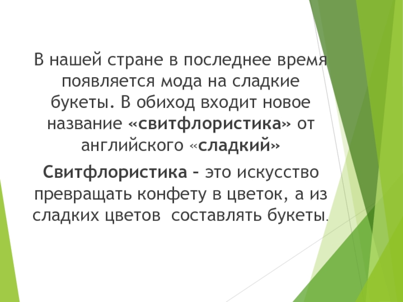 букеты. В обиход входит новое название «свитфлористика» от английского «сладкий»