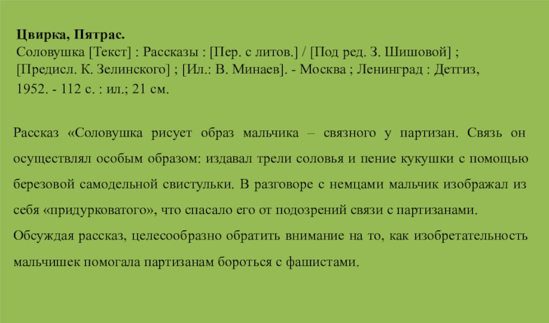 Имя Цвирки, занесено в «Краткую литературную энциклопедию». Рассказ вошел в антологию «Солдаты России», изданную в 1954 году.