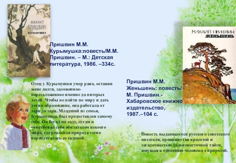 Курымушка:повесть/М.М. Пришвин. – М.: Детская литература, 1986. –334с.