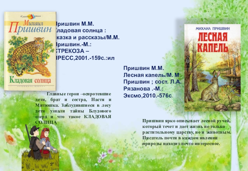 Кладовая солнца :сказка и рассказы/М.М. Пришвин.-М.: СТРЕКОЗА –ПРЕСС,2001.-159с.:ил