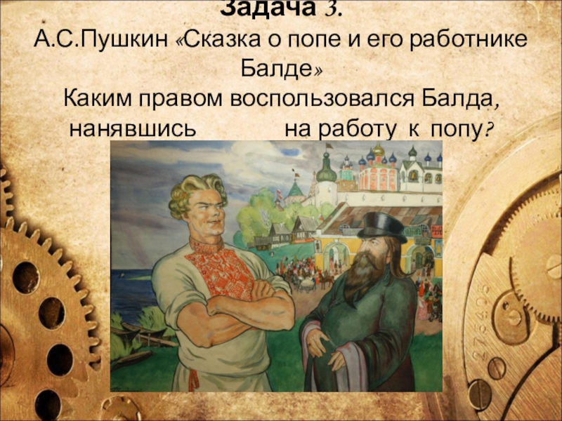 Задача 3.  А.С.Пушкин «Сказка о попе и его работнике Балде» Каким правом