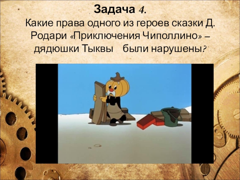Задача 4.  Какие права одного из героев сказки Д.Родари «Приключения Чиполлино» –