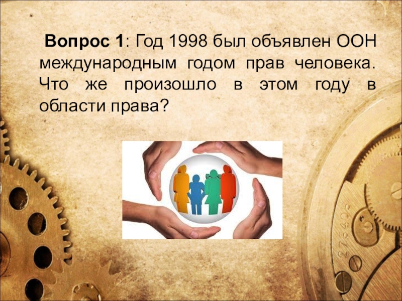 Вопрос 1: Год 1998 был объявлен ООН международным годом прав человека. Что же произошло в этом году