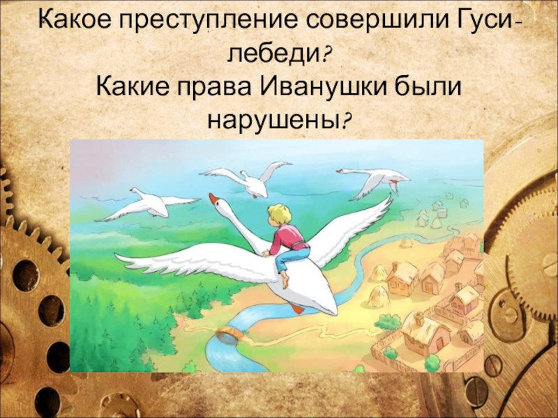 Задача 1.  Какое преступление совершили Гуси-лебеди?  Какие права Иванушки были нарушены?