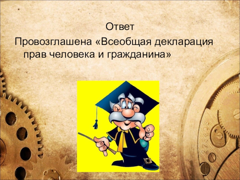 ОтветПровозглашена «Всеобщая декларация прав человека и гражданина»