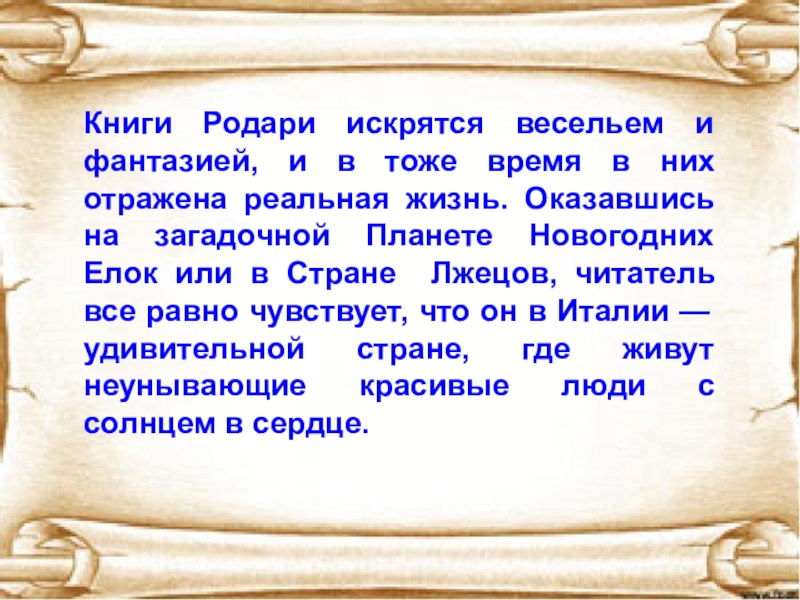 Слайд 21Книги Родари искрятся весельем и фантазией, и в тоже время
